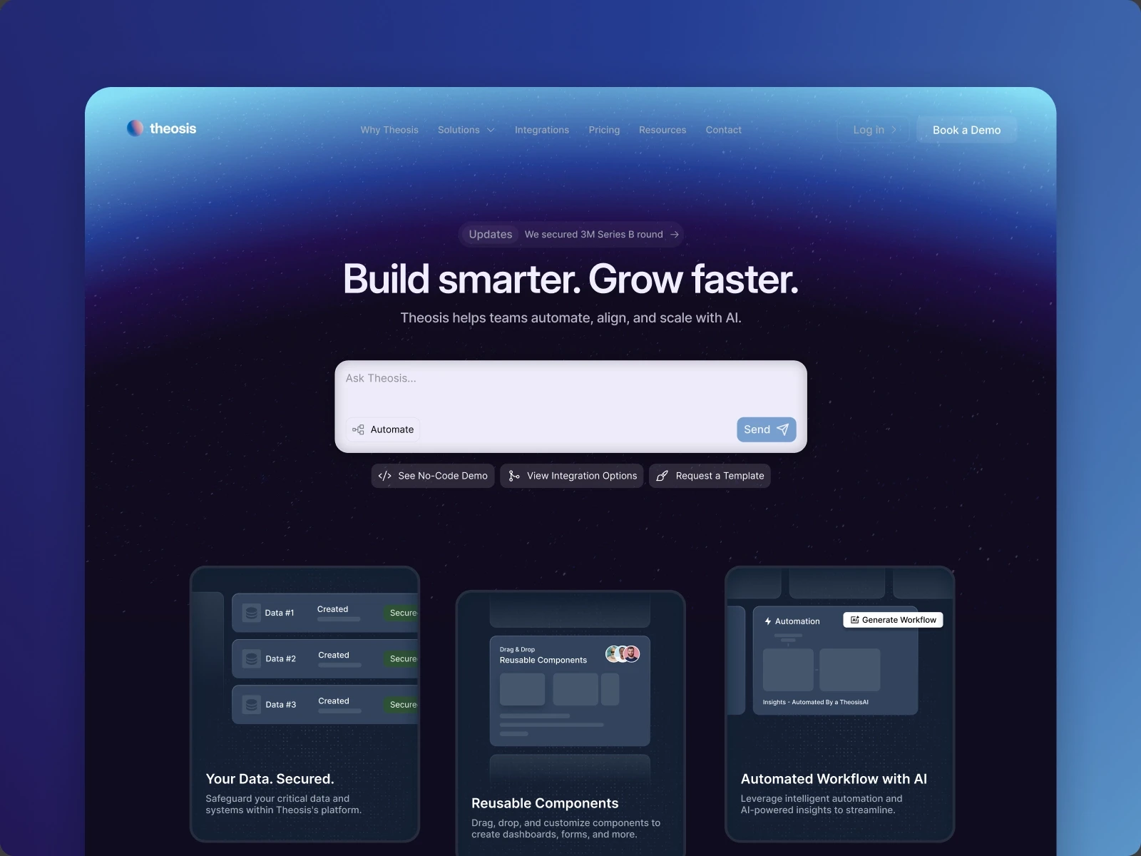 Theosis is a modern Framer template designed for AI startups and Tech SaaS projects. It has a polished, structured layout with subtle animations.